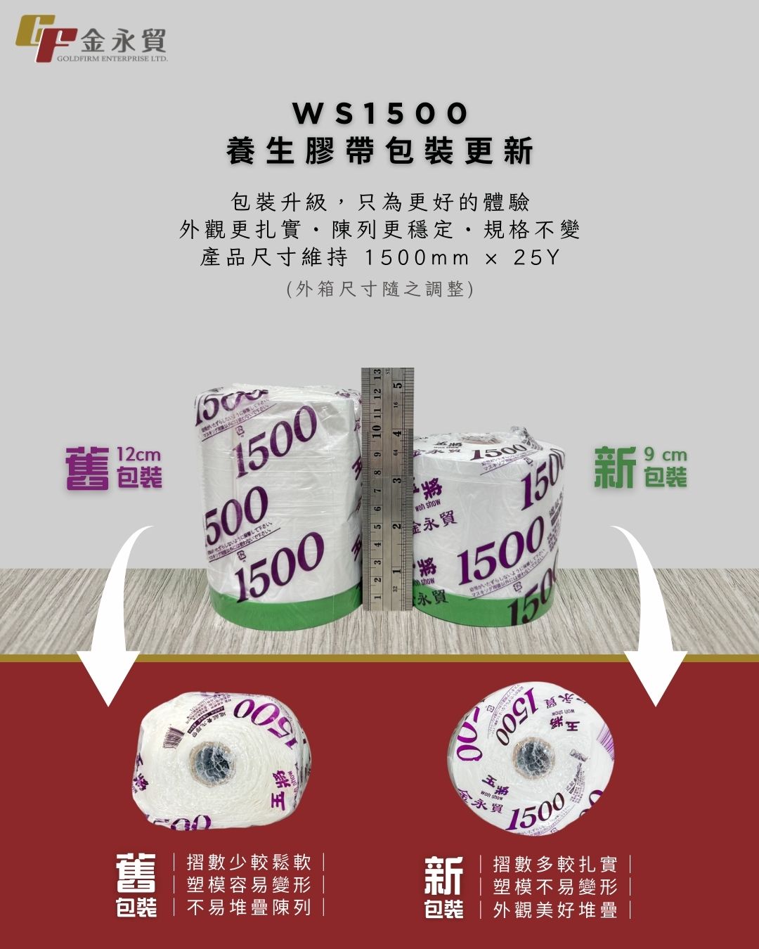 包裝升級公告|WS1500玉將養生膠帶