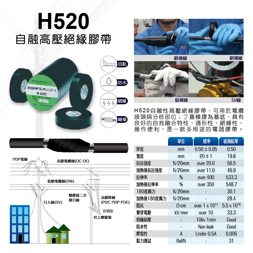 除了基本的自黏與絕緣,H520 在數據表現上更令人安心: